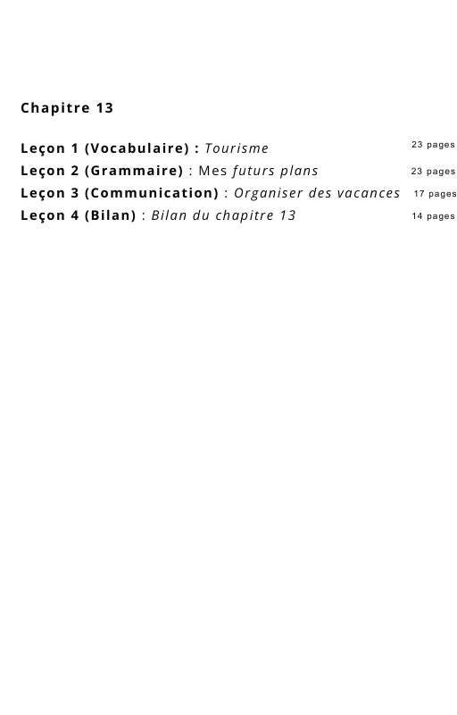 → Synthèse des acquis en vocabulaire, grammaire et communication + exercices d’évaluation.